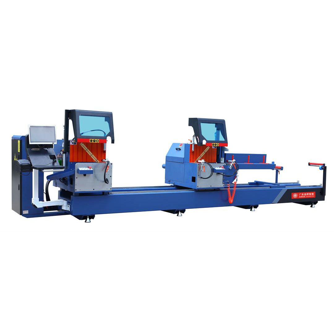 用于鋁門窗及幕墻型材的切割。給系統采用進口直線導軌副,精度高、壽命長。氣液阻尼缸保證鋸片進給均勻,運動平穩。活動機頭移動采用大導程滾珠絲杠運動形式,傳動精度高,定位準確,工作平穩。采用數控技術可完成不同規格尺寸的型材自動下料,實現 45度型材的角度切割。