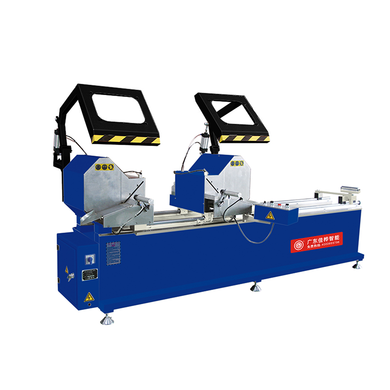 鋁塑型材雙頭切割鋸用于鋁合金、塑料型材的45度切割加工。采用擺動式工進形式,型材夾緊和切割采用氣壓傳動。本機結構輕巧簡單,操作靈活,下料尺寸精度高。