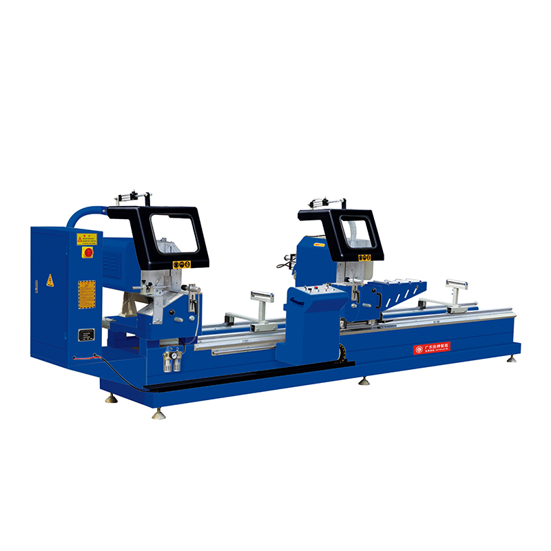 用于鋁門窗及幕墻型材的切割。采用進口直線導(dǎo)軌副,精度高、壽命長。氣液阻尼缸保證鋸片進給均勻,運動平穩(wěn)。活動機頭移動采用大導(dǎo)程滾珠絲杠運動形式,傳動精度高,定位準確,工作平穩(wěn)。采用數(shù)顯技術(shù)可完成不同規(guī)格尺寸的型材自動下料,兩鋸片可自動轉(zhuǎn)換角度,實現(xiàn) 45 °、 90 °型材的角度切割。