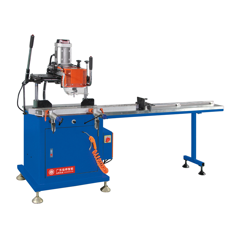 本機是用于加工鋁型材門窗排水槽、滑輪槽、鎖孔、五金件孔等各類孔槽的專用設備。更換不同的仿形板,可完成不同形狀的孔槽加工。采用高速切削(13500r/min)、氣動夾緊、工作效率高、性能穩定可靠。